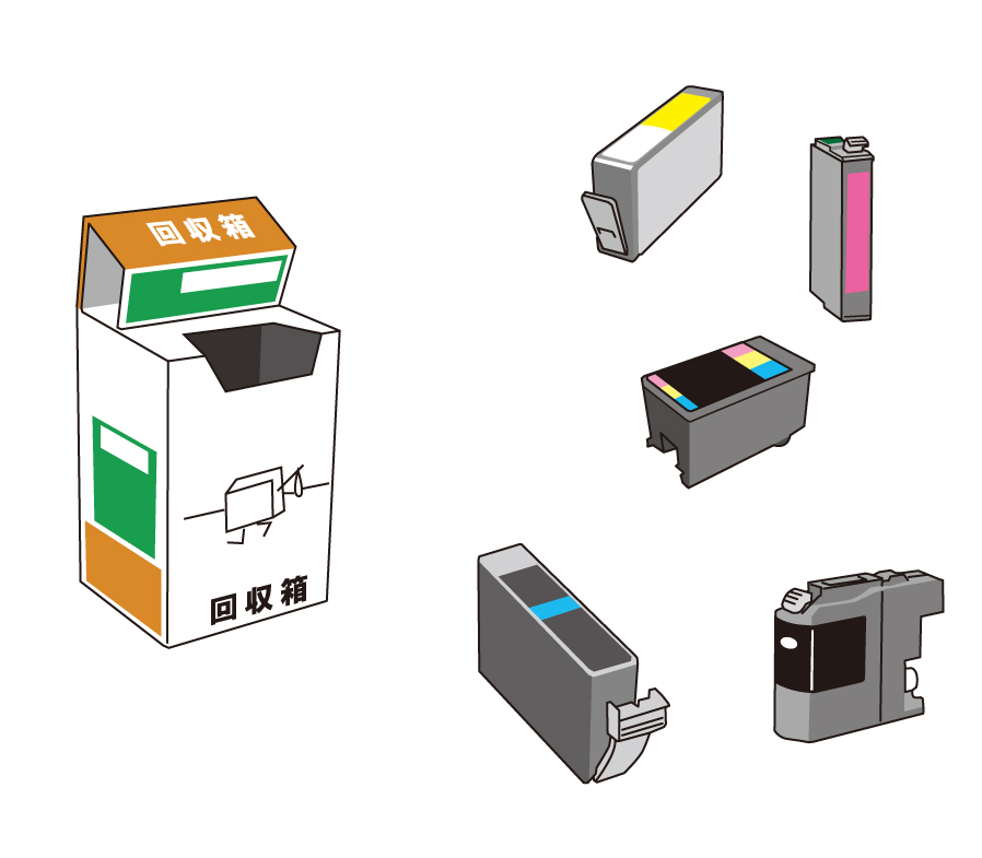 最近、郵便局や自治体施設、家電量販店の入口などで、使用済みインクカートリッジの回収ボックスを見かけることが増えました。